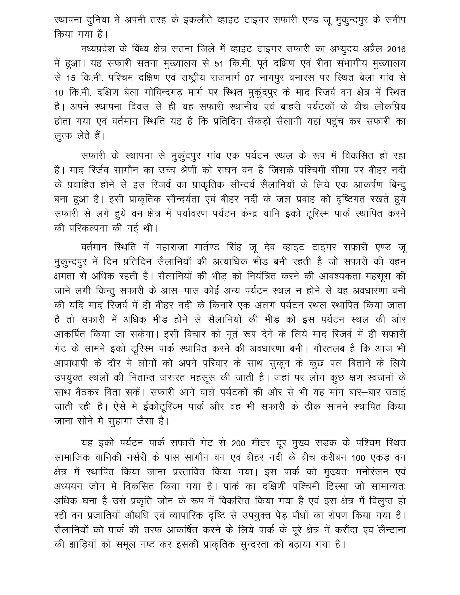 Ecotourism Park Inaugurated and being run by the Mukundpur Zoo Team