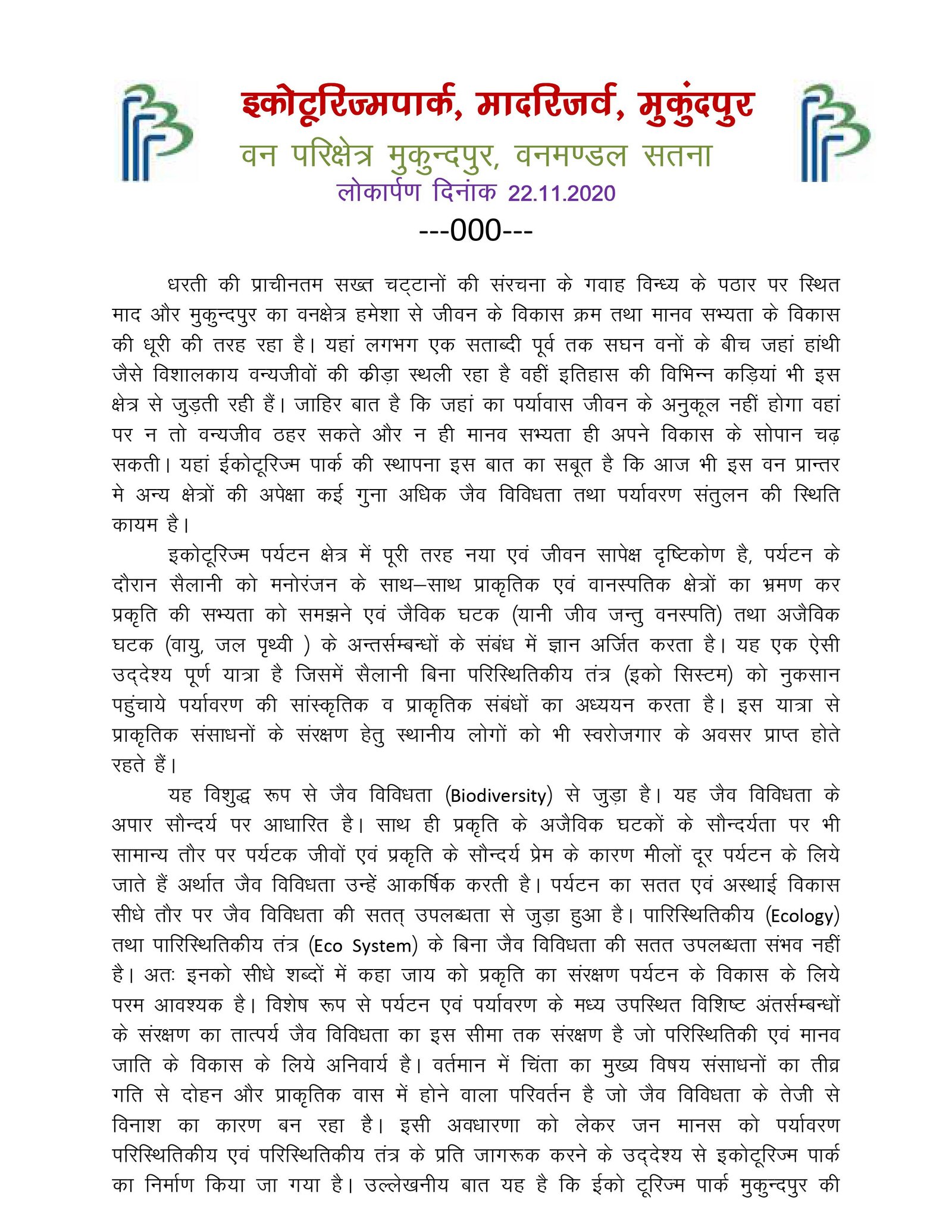 Ecotourism Park Inaugurated and being run by the Mukundpur Zoo Team